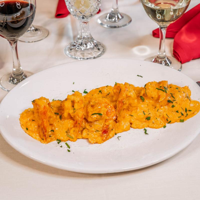 5 jumbo shrimp parmigiano with pappardelle, served in vodka sauce with crab meat